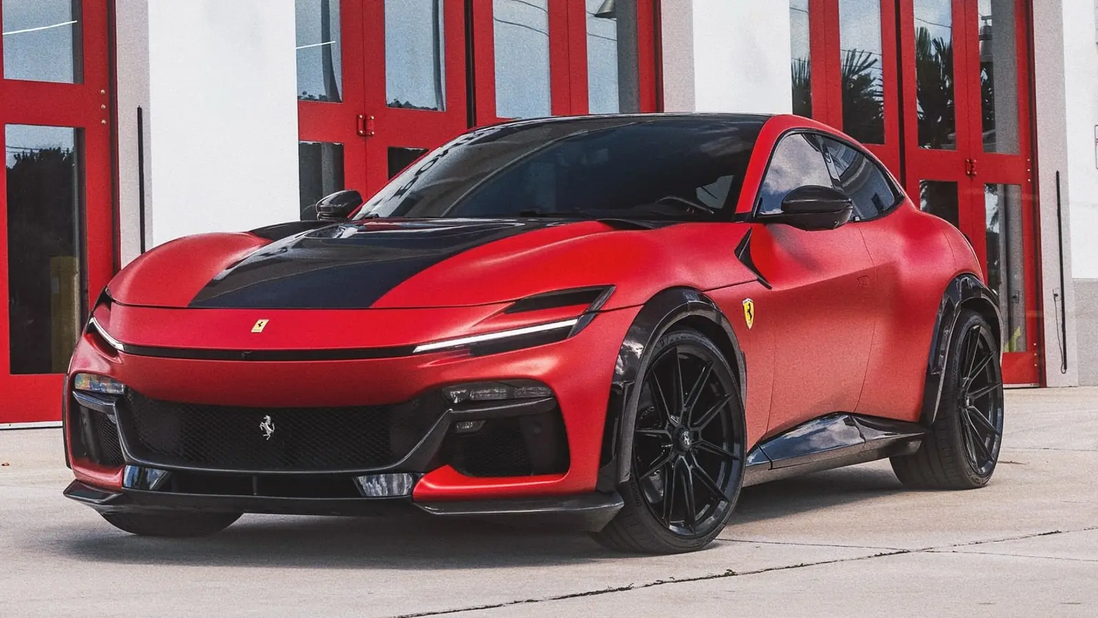 Champion Motorsport from Florida, known for its racing pedigree, has completed its first Novitec Ferrari Purosangue Esteso widebody program. This custom build combines Satin Red paint with Glossy Black and carbon fiber accents, resulting in a menacing yet elegant look. The Esteso kit features a split-color hood, black roof and mirrors, and extended bodywork that emphasizes the SUV’s muscular stance.