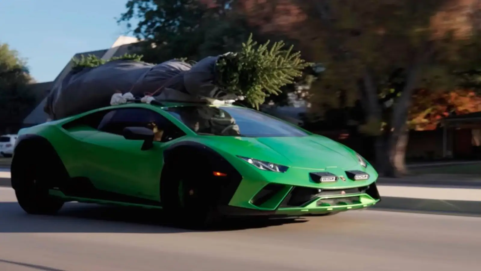 Lamborghini Huracan Sterrato のオーナーであり Gas Monkey Garage 創業者のリチャード・ローリングスが、アスファルトを離れた世界でこのスーパーカーがどう振る舞うかを試した。テキサス州ジャクソンビルの River Run Park では、ヘリコプターがダートロードに車両を下ろして雰囲気を作り、そのまま荒れ地へと送り出している。Huracan Sterrato は泥や水たまりを跳ね上げながらも、滑りやすい路面で落ち着きを保った。低グリップ路に合わせた専用のRallyモードに加え、四輪駆動と機械式LSD付きの後輪デフを装備。こうした足まわりが、映像の見せ場以上の実力を裏打ちしている。続いてはクリスマスツリーの調達。ローリングスは見つけた中で最も背の高い一本を選び、ルーフラックに固定した。唯一の心配は排気熱で木が傷むこと。後端のパッケージングがタイトなこのモデルでは、もっともな懸念だ。Lamborghini Huracan Sterrato は自然吸気の5.2リッターV10を搭載し、最高出力は602hp。0-100km/h加速は2.4秒、最高速度は260km/hに制限される。生産台数は1,499台に限られており、ヘリコプターの演出がなくとも、実車に出会える機会はそう多くない。プロジェクトが完了すると、このスーパーカーは譲り渡される。舗装路の外でもスポーツカーがどう生きるのかを、今回の試みははっきりと思い出させてくれる。