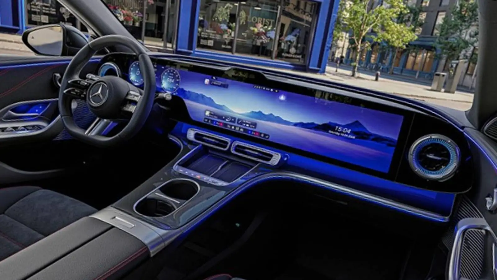 Het opvallendste kenmerk is de MBUX Hyperscreen, die over de volledige breedte van het dashboard loopt. Het instrumentenpaneel en het multimediassysteem zijn geïntegreerd in één scherm, wat een zwevend interface-effect creëert.