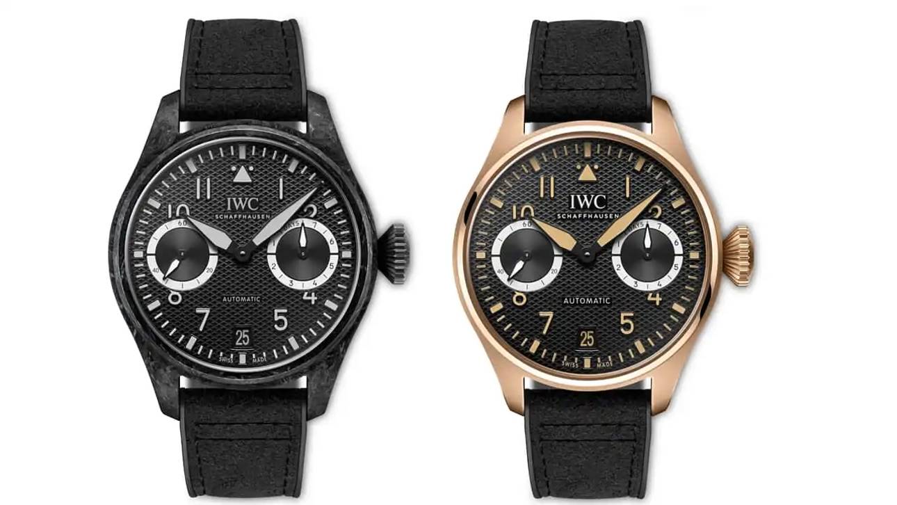 Обе версии Big Pilot’s Watch являются данью уважения G-Class и выполнены по мотивам легендарного внедорожника. Так, они получили дополнительные циферблаты в положении «3 часа» и «9 часов», напоминающие фары роскошного внедорожника. Черные циферблаты имеют рельефную структуру, вдохновленную автомобилями Mercedes-AMG, и аппликации с черным PVD-покрытием, заполненным светящимся материалом.