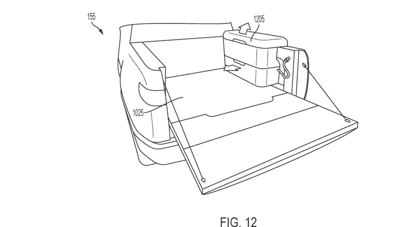 В заявке также обсуждаются грузовые ящики, которые могут быть закреплены в кузове с помощью этой системы зажимов. Ящики могут открываться с двух сторон, что обеспечивает дополнительную гибкость при доступе к предметам после их размещения в грузовом отсеке.