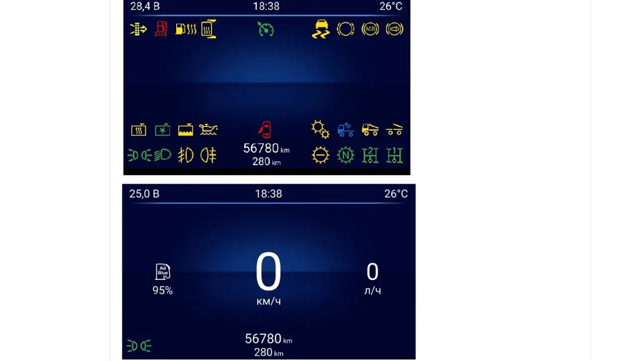 Настройки дисплея: водитель сможет настроить дисплей под свои предпочтения, изменяя параметры отображения и выбирая нужные индикаторы.