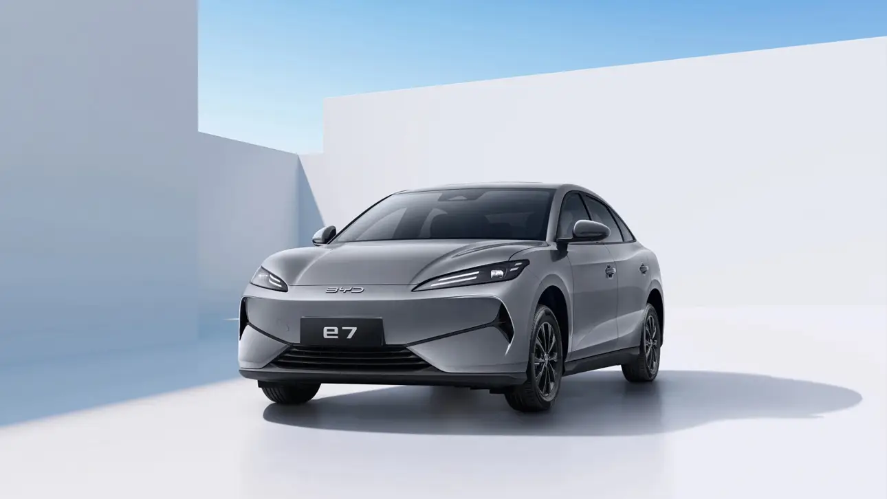 BYD официально представил седан e7 — новую полностью электрическую модель среднего класса. Автомобиль получил длинную колесную базу в 2820 мм, выразительный передок с двойными светодиодными полосами и фирменную стилистику Ocean X, ранее применённую в концептах марки.