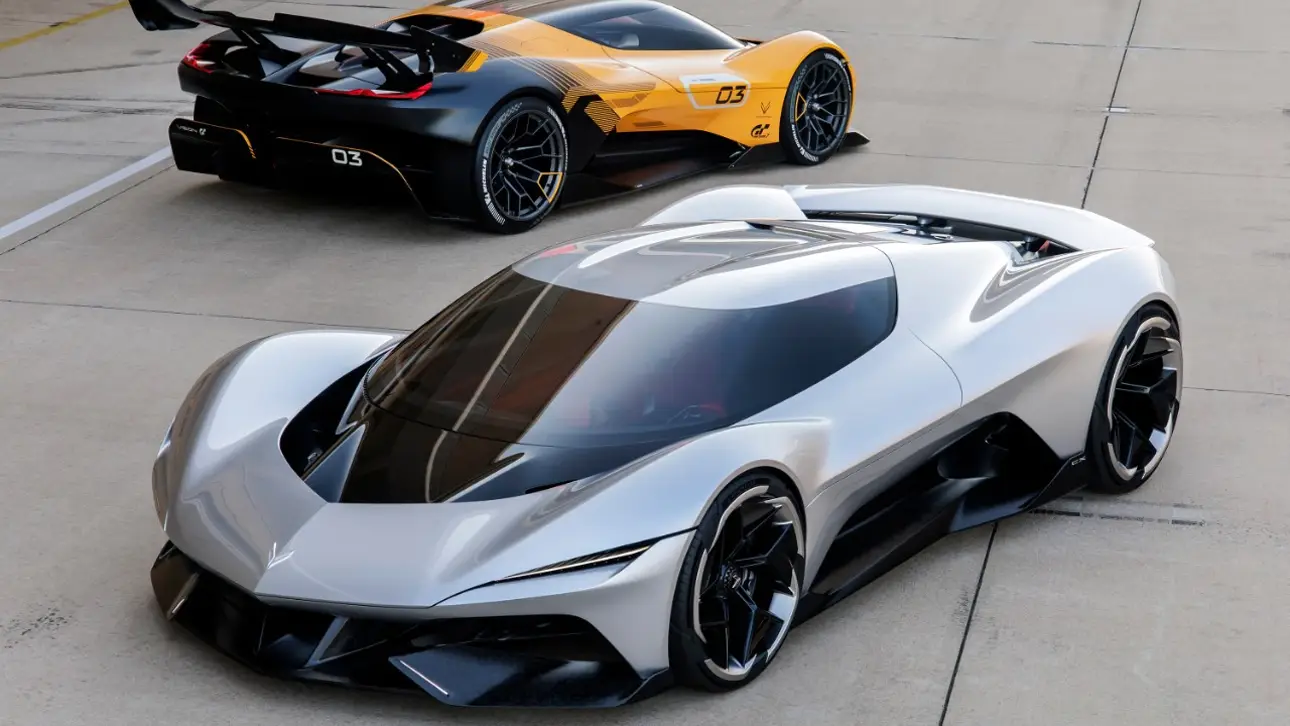 CX.R Vision Gran Turismo — гоночная версия, созданная для виртуального мира Gran Turismo 7. Здесь к электромоторам добавлен 2,0-литровый V8 на синтетическом топливе, разгоняющийся до 15 000 об/мин и доводящий суммарную отдачу до тех же 2000 л.с. Жёлто-чёрная окраска отсылает к культовым Corvette GT.