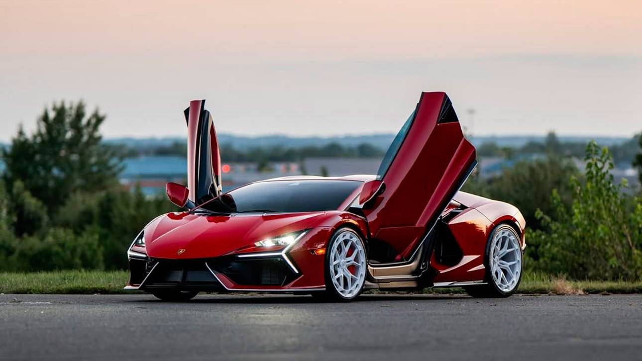Lamborghini Revuelto представили в красном цвете с белыми колесами