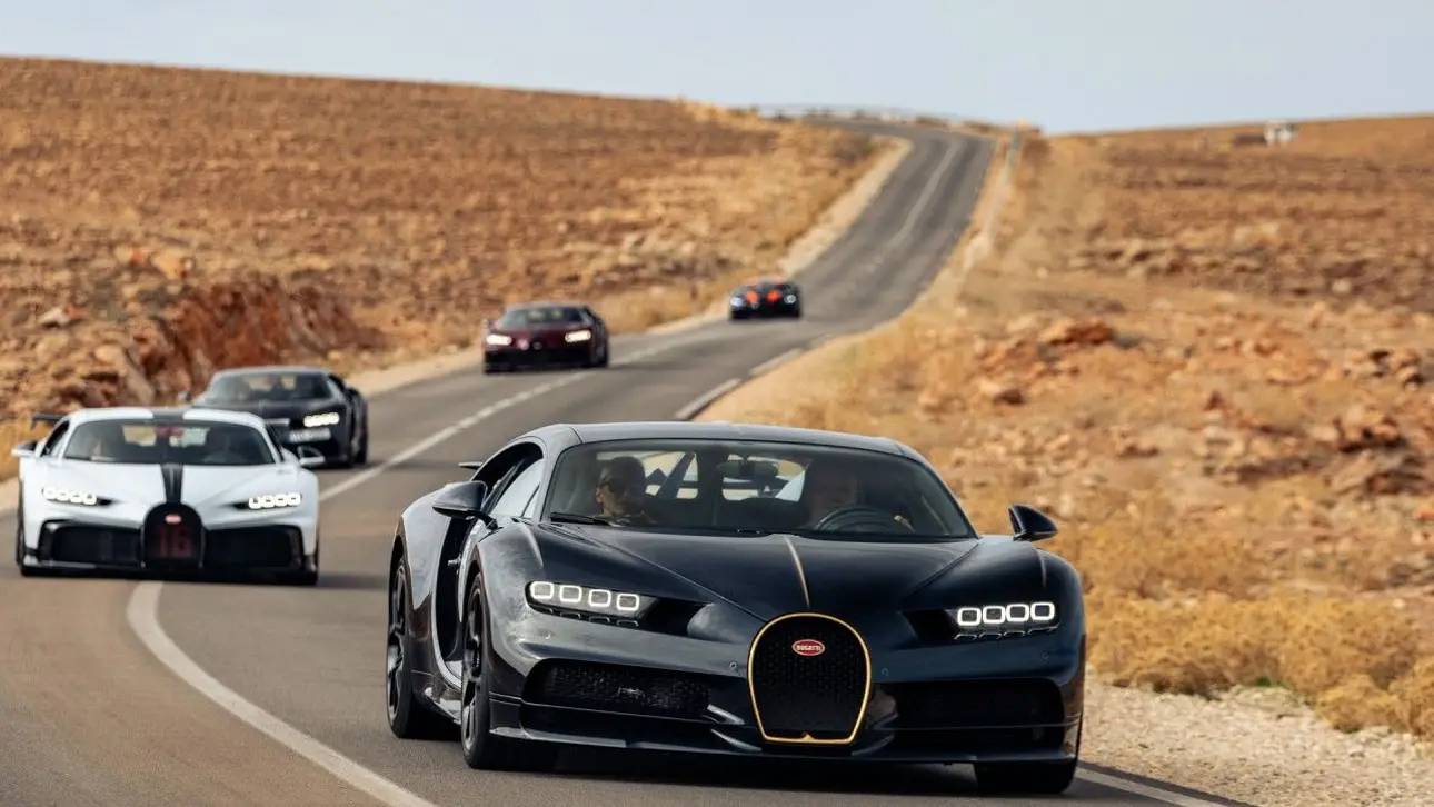 Chiron оснащён 8,0-литровым двигателем W16 с четырьмя турбинами, развивающим 1500 л.с. Мощность передаётся через роботизированную коробку передач на полный привод. Разгон до 100 км/ч занимает менее 2,5 секунд, а максимальная скорость ограничена на отметке 420 км/ч.