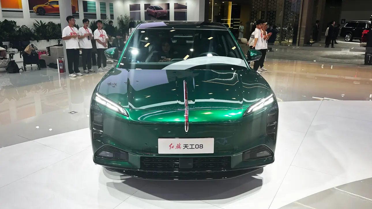 На автосалоне в Гуанчжоу сегодня состоялась премьера нового электрического кроссовера Hongqi T08 (Hongqi Tiangong 08). Модель представляет собой крупный пятидверный SUV с фирменной вертикальной светодиодной линией на капоте и узкой головной оптикой. Задняя часть выполнена в стиле последних моделей бренда и получила широкую световую полосу по всей ширине дверцы багажника.