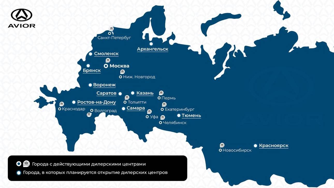 На сегодняшний день сеть AVIOR насчитывает 14 дилерских центров, включая ключевые города — Москву, Санкт-Петербург, Краснодар, Нижний Новгород и Уфу. К концу 2026 года компания планирует увеличить их число до 25.