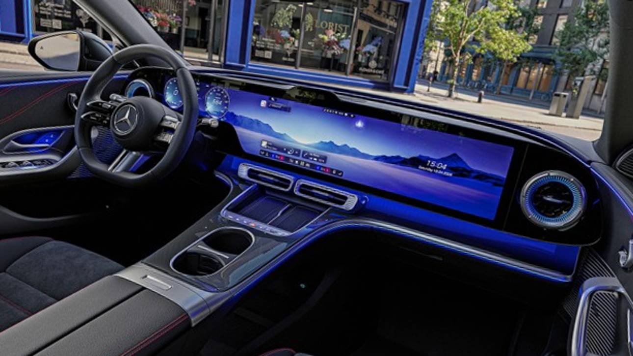 Главной особенностью стала панель MBUX Hyperscreen, которая занимает всю ширину передней панели. Приборная панель и мультимедиа объединены в единый экран, создавая эффект «парящего» интерфейса.