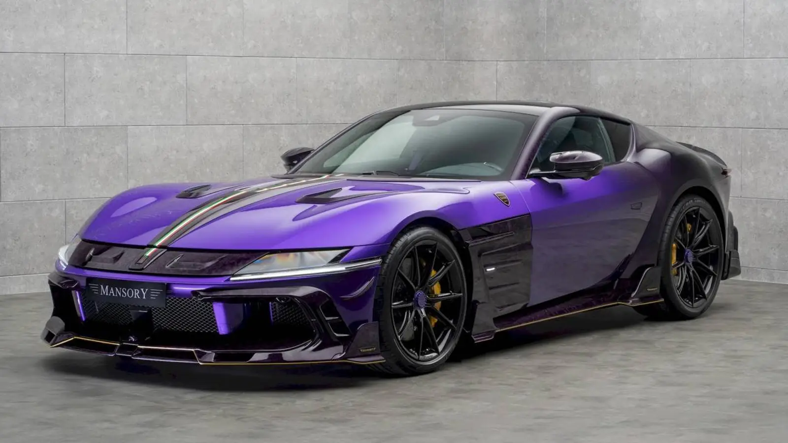 Hjulen får särskild uppmärksamhet: VF.5‑fälgarna dyker upp här för första gången, 21 tum fram och 22 tum bak. Karossen bär en violett lack med kontrasterande kolfiberinslag och en rand i Italiens flaggfärger – en färgsättning som ger attityd utan att bli överdriven.